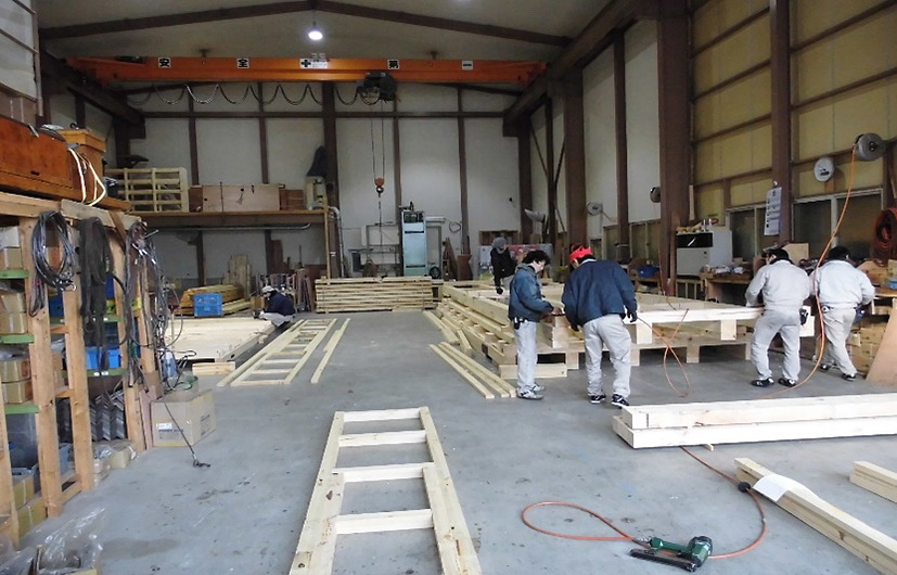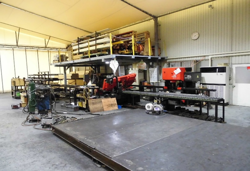 大型重量精密工作機械の梱包箱作製に当たり、安全第一・作業効率向上 の為、作業環境の改善に努めております。 ・5トン クレーン2基設置 ・防音対策済工場 ・冷暖房設備設置 ・LED照明 ★ 本社工場 全景 ★木製箱製作工場 ★スチール箱製作工場